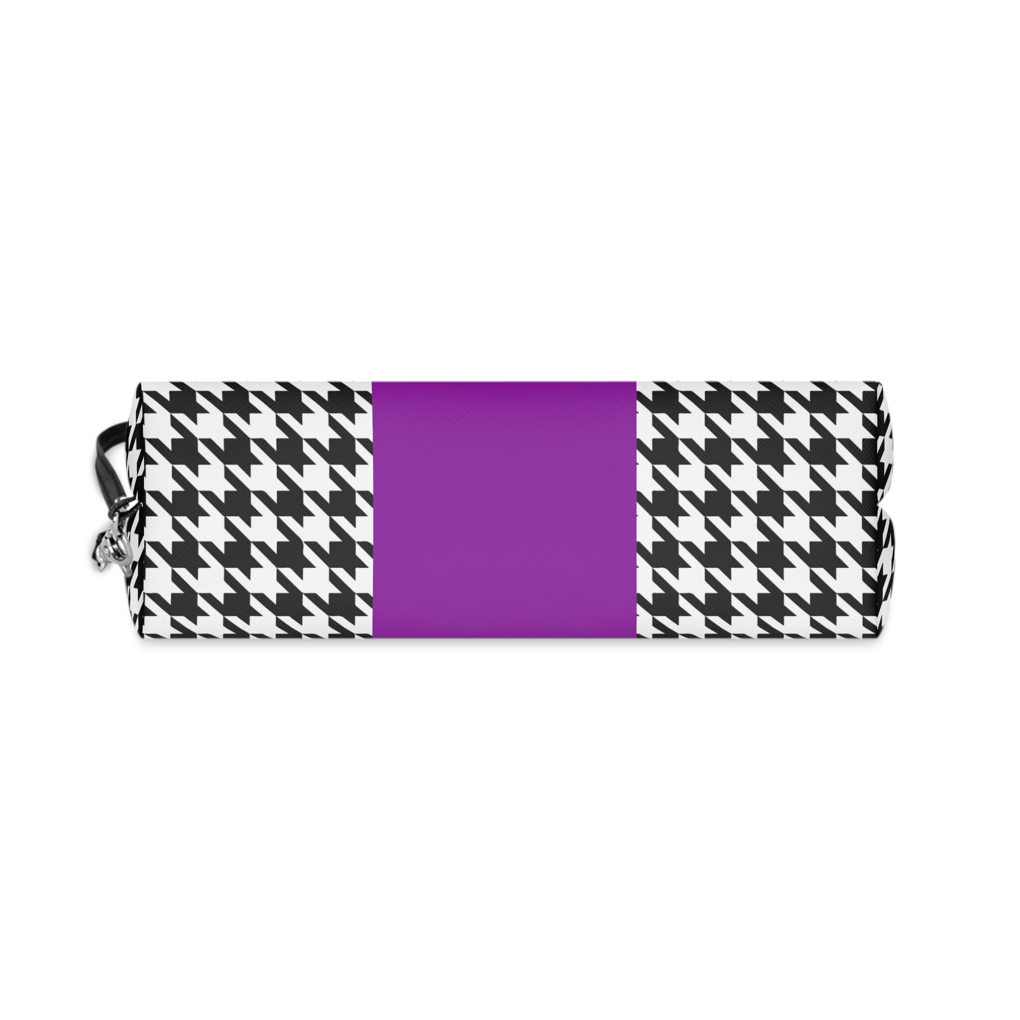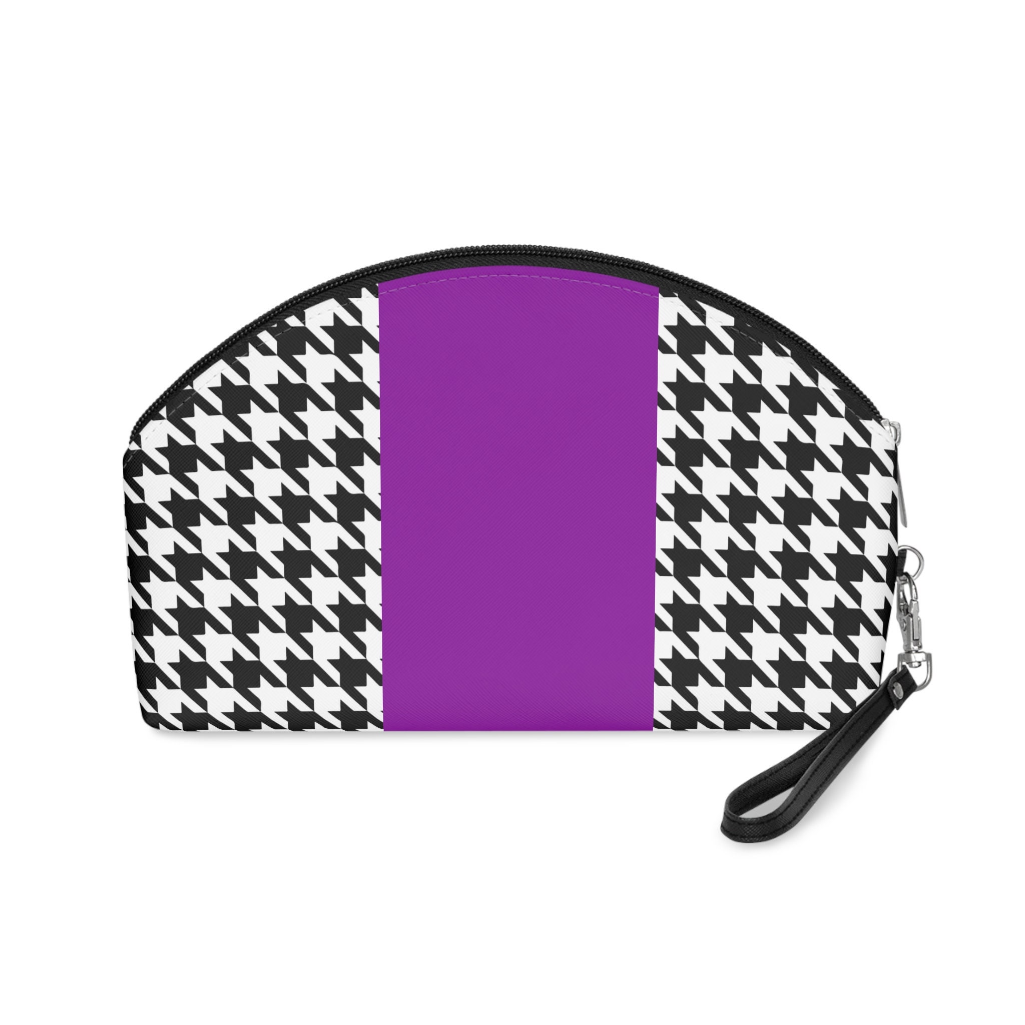 Purple, Black, and White Houndstooth patterned Makeup Bag,