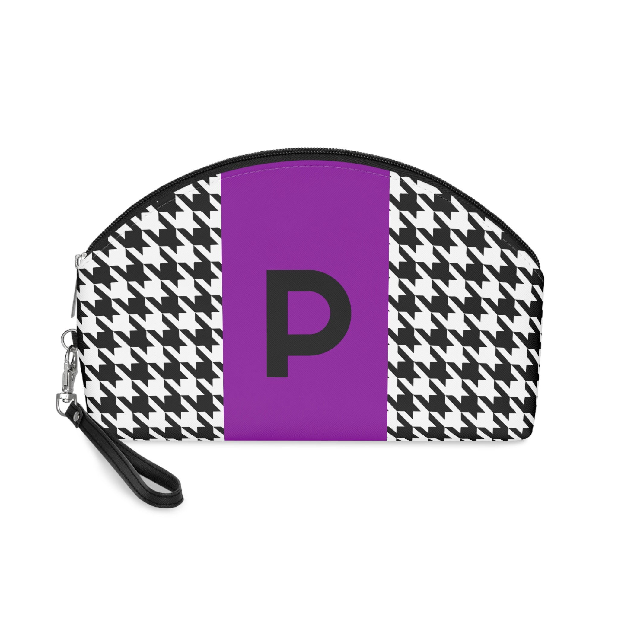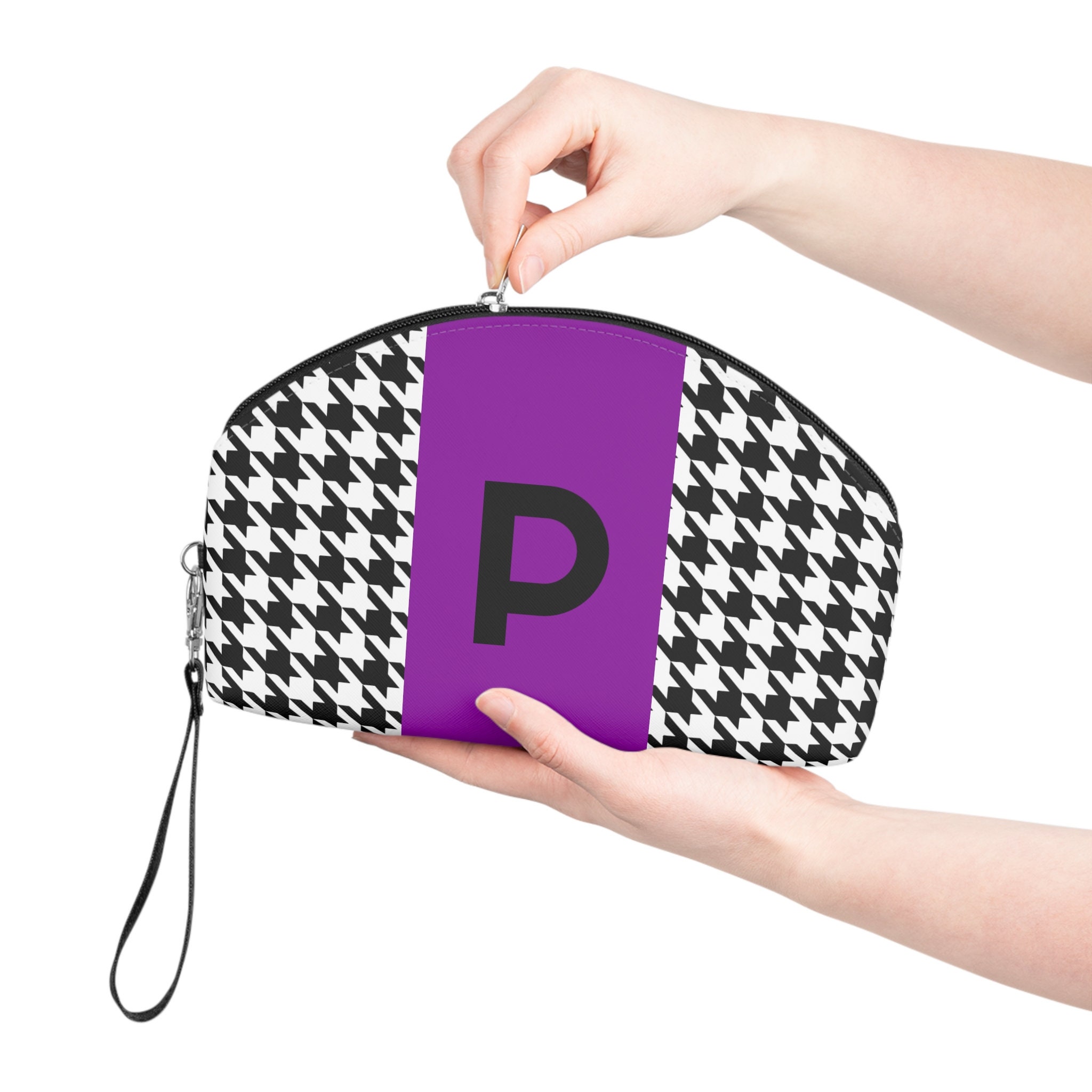 Purple, Black, and White Houndstooth patterned Makeup Bag, Personalized with Initial P, Her Makeup bag, Initialized