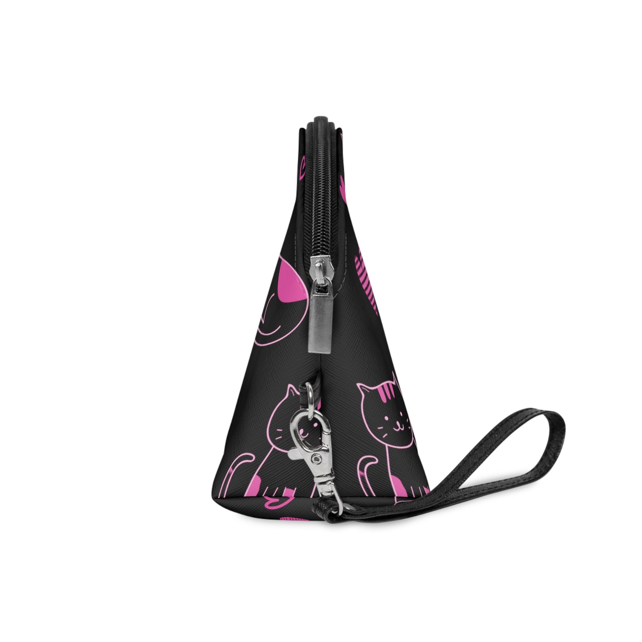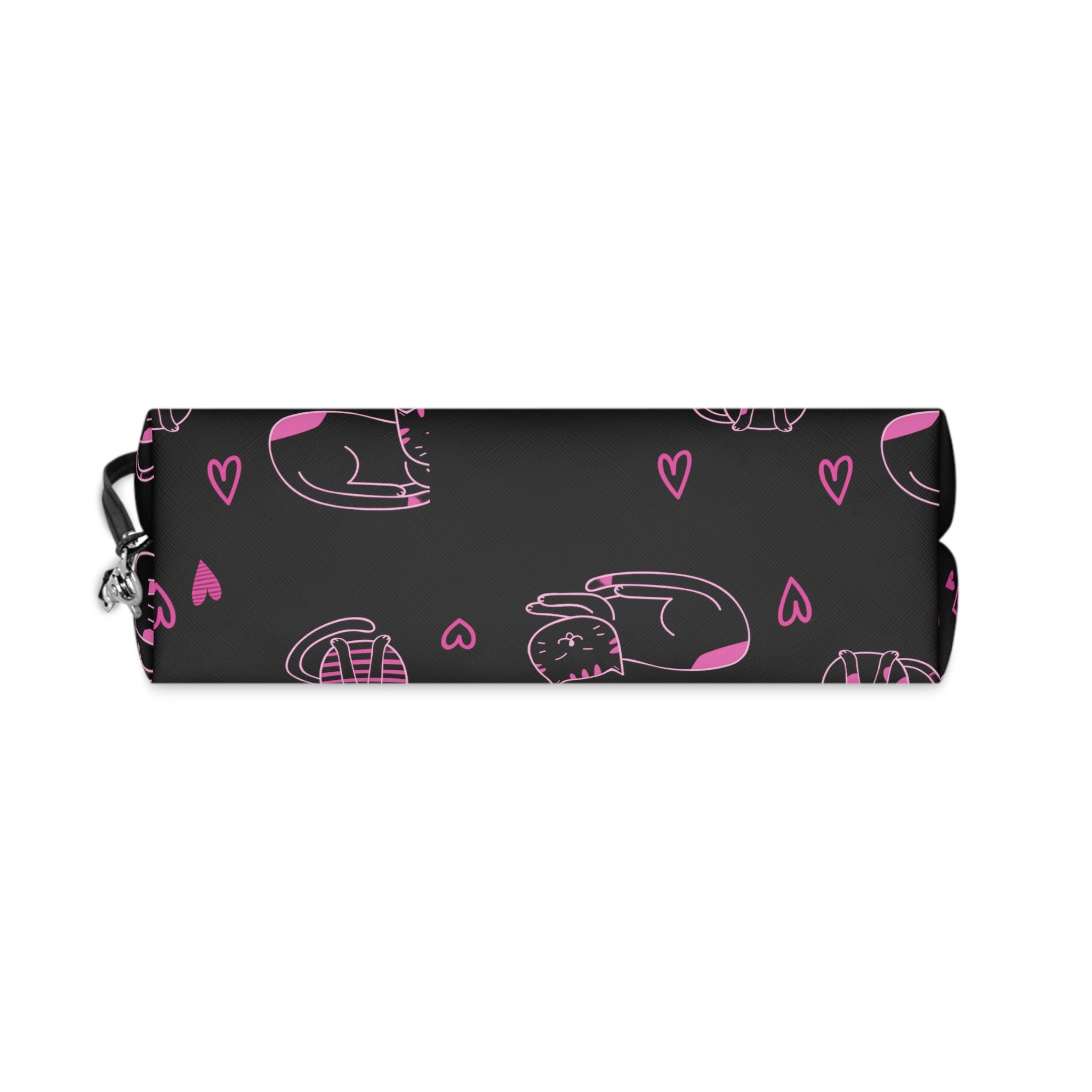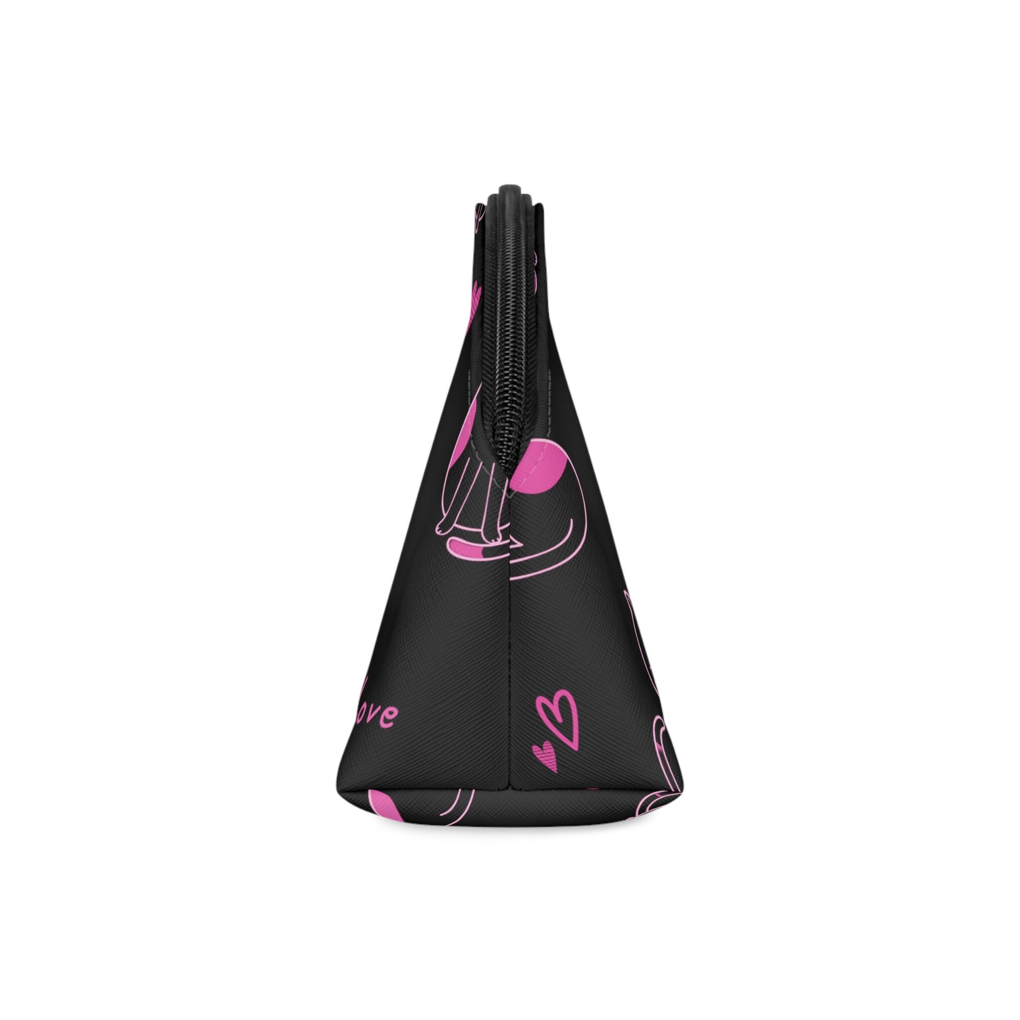 Pink Love Cats Black Makeup Bag, Accessory Bag, Personalized Cosmetic Bag, Women's Bag, Initial W